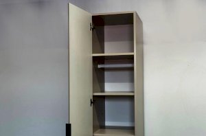 Корпус шкафа изготовлен из ЛДСП, что гарантирует прочность и долговечность. Фасад из МДФ в плёнке ПВХ не только выглядит эстетично, но и защищает шкаф от повреждений.