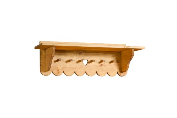 Очаровательная вешалка шириной 90 см с сердцем станет душой вашей гостеприимной прихожей. Компактная конструкция имеет шесть вешалок-грибков и полку для головных уборов. Аккуратно, компактно, недорого и очень стильно.