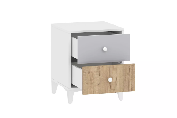 Высота ножек позволяет с легкостью проводить уборку. Удобная высота тумбы позволяет разместить светильник и с комфортом читать книгу перед сном. Наличие двух выдвижных ящиков позволяет положить в них любимые мелочи, сохраняя при этом порядок в комнате. Направляющие полного выдвижения позволят использовать каждый сантиметр ящиков.