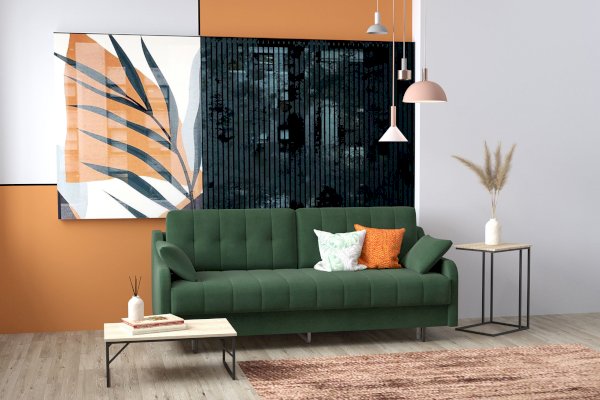 Диван Женева выполнен в модном стиле mid century. Отличительной особенностью модели являются фигурные подлокотники, которые в сочетании с минимализмом прямых форм сиденья и спинки, создают целостный современный образ. Высокие опоры придают дивану легкости и облегчают процесс уборки: клиренс 10 см позволяет свободно маневрировать роботу-пылесосу. Дополнительное преимущество - задняя спинка в основной ткани, что дает возможность размещать диван не только у стены, но и в любом месте помещения. Особую прочность дивану придает металлический каркас из конструкционной стали, а простой и надежный механизм трансформации - пантограф - обеспечивает долгий срок службы.