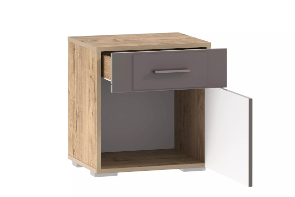 Тумба Livorno НМ 013.62 не перегрузит и сделает функциональной прикроватную зону. На поверхности модуля поместится небольшая лампа точечного света или предметы декора. В выдвижном ящике и нижнем отделении с дверцей будет удобно хранить личные вещи, которые хочется иметь под рукой.